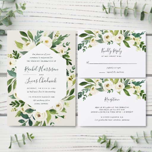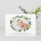Elegante botanische Geburtenankündigungen zeigen das Foto des kleinen, süßen (horizontal oder landschaftlich orientierten), umgeben von einem ovalen Kranz mit üppiger grüner Vegetation und weißen Blume. Personalisieren Sie sich mit dem Namen Ihres Babys und den Geburtsstatistiken unten.