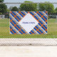Personalisiertes horizontales Banner zeigt die Ålander- oder Aalander-Fahne mit den Worten AALAND ISLANDS darunter, in den Farben der Fahne. Design ist gekachelt für einen künstlerischen Effekt. Ein weißes Fraktal quadratischer Quadrate bietet einen Platz für Ihren Namen, in blauen Buchstaben, für eine personalisierte Touch zu Ihrem Banner. Cool für Wiedersehen.