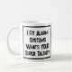 Ein lustiger Slogan auf einer Tasse, die sagt: "Ich fit Alarm Systems. Was ist IHR super Talent?" Tasse für einen Alarm-Installateur oder einen Sicherheitssystem-Installer. Schwarzweißtext.