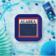Ein grafisches Alaska Flag Design auf einer Papierplatte.
