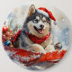 Alaskan Malamute in Sledge Let it Schnee Weihnacht Button