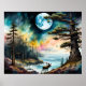 Große Elche Wanderung zum Ozean aus dem Wald unter einem Vollmond AI Generated Art von minx267