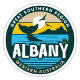 Ein kühnes, Vintag inspiriert Sonnenuntergang-Design, das Albany in der Großen südlichen Region von Western Australien feiert. Dieses runde Kunstwerk besticht durch eine auffallende Silhouette eines aus dem Ozean aufragenden Wal-Schwanzes mit ruhigen Inseln in der Ferne und einem anmutig steil ansteigenden Vogelschwarm - ein perfekter Tribut an Albany natürliche Schönheit und das Meeresleben.