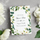 Elégante aquarelle botanique enregistrer la carte de date affiche vos détails mariages de façon unique dans un bloc noir épais et des lettres calligraphiques, encerclées par une bordure de couronnes de fleurs blanches et de feuillage vert luxuriant. Enregistrez les dates inversées en vert de forêt solide.