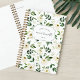 Le planificateur personnalisé chic est doté d'un motif arrière - plan de roses d'aquarelle blanche et d'une végétation luxuriante. Personnalisez avec trois lignes de texte personnalisé.