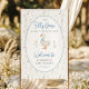 Herzlich willkommen bei Ihren Gästen! Dieses Vintag inspiriert Babyduschenwillingsschild besticht durch eine süße Gans in einem blauen Bogen, umgeben von sanften, zarten Blumen. Mit seinem Storybook-Gefühl und dem antiken Design ist es der perfekte Einstieg für ein Baby-Fest, das sowohl spielerisch als auch elegant ist.