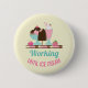 Ein Knopf mit einem lustigen Sprichwort - Arbeiten bis Eis. Illustriert mit einer leckeren Schokoladeneis-Bar, einem 3-Scoop-Parcours mit Schokoladenkacken, Sprinklen und einer kleinen Kirsche. Und eine Erdbeere schwimmt mit Schlagsahne.