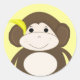 Ein alberner kleiner Affe mit niedlichem Gesicht, dunkelbraunes Fell und eine Banane im Ohr. Auf einem gelben Hintergrund.