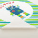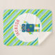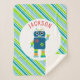 Alberner Roboter scherzt personalisierte gestreifte entzückende Sherpa Decke. Niedlicher blauer Roboter in der Mitte. Fügen Sie Namen im roten Schriftart, gestreifter Hintergrund hinzu. Modischer Roboterentwurf des Spaßes. www.SamAnnDesigns.com