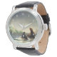 Uhr, Vintage Männeruhr mit schwarzem Lederarmband
