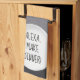 Alexa elektronischen Gerät Befehl für das Abendessen auf weißer Tafel und Silbergeschirr. Hintergrund ist auf texturierten grauen Stoff.