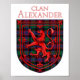 Alexander Scottish tartan kariertes Muster für die Alexander Clan Familie unter dem roten Löwenschild von Schottland.