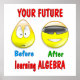 Promote algebra with this fun design with a before and after face showing how important algebra is to your life. Great for an algebra teacher.