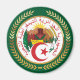 Das algerische Staatswappen wird in eine kreisförmige Form eingegossen, die mit Imitaten goldgelb und mit Set inmitten eines Imitats goldenen Lorbeerkranzes gefüllt ist.