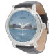 Uhr, Vintage Männeruhr mit schwarzem Lederarmband