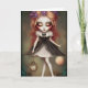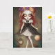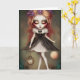Alice Illustration Kunstwerk Grußkarte von Ricaso - eine Illustration von Alice mit einer Uhr, sie hat violette Blumen im Haar, sie trägt ein graues Kleid. Illustration Copyright © Ricaso