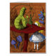 Moderne Version einer Vintagen Buchillustrierung Eine hookah-rauchende Raupe sitzt auf einem Pilz und spricht mit Alice.