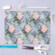 Die Mad Hatter, Cheshire Cat, Girl Alice und White Rabbit aus der klassischen Alice im Wunderland erscheinen in Weiß versteckt zwischen den Blätter und Blume von wunderschönen duskyblauen, rosa und hellblauen Vintagen Rose, auf diesem wunderschönen whimsical literary themed paper für Geschenkverpackung oder Crafting und Dekodierung.
