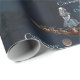 Alice aus der Kinderbuch-Alice im Wunderland blickt in den blauen Nachthimmel eines Vintagen Weihnachtsmanns und seinen Schlitten voller Spielzeug, zusammen mit ihrem Zitat aus dem Buch "Neugierin und Neugierige, weinte Alice!" und ein schöner Mond, um dieses magische und lustige Weihnachtsgeschenk-Verpackungspapier zu machen.