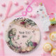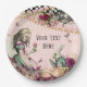 Alice im Wunderland Papier Teller mit Vintagen Alice und Freunde auf einem rosa blühenden und schwarz karierten Hintergrund. Diese niedlichen Vintagen Alice im Wunderland Papier Teller können einfach für Ihre Veranstaltung angepasst werden, indem Sie einfach den gewünschten Text hinzufügen. Sie können den Text auch entfernen.