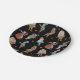 Alice im Wunderland. Eine Collage von handgemalten Figuren bringt diese klassische Kindergeschichte zum Leben: Alice, die Königin des Herzens, König des Herzens, Humpty Dumpty, Der Mad Hatter und das Weiße Kaninchen. Passen Sie die Hintergrundfarbe an Ihre Gestaltung an.