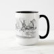 Schwarzweiss-zeichnen des wütenden der Tee-Party des Hutmachers. Weißer Hintergrund. Feld, Griff und Kante sind schwarz.