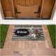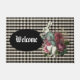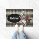 Whimsical Wohngestaltung ist eine Farbversion der Original-Alice im Wunderland Weißes Kaninchen mit Blumenstrauß auf schwarz-weißem harlequin Diamantboden. "Willkommenstext" in schwarzem Oval kann nach Belieben angepasst oder verlassen werden.