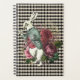 Whimsical Planermuster zeigt die tönte Version der Original-Alice im Wunderland White Rabbit mit Blumenstrauß auf schwarz-weiß harlequin Diamant Hintergrund.