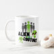 Alien Couture.b Nicht nur grün. Dieses Bild zeigt ein spielerisches und skurriles Design, das sich um das Thema Außerirdische und Mode dreht. Eine Gruppe von sechs Cartoon Außerirdischen, die in einer Zeile dargestellt sind, stehen vor dem fett gedruckten Text "ALIEN COUTURE". Die Außerirdischen sind alle grün, mit großen Augen und einfachen, abgerundeten Körpern. Die zentrale Alien ist stehend groß und die größte der Gruppe, während die anderen kurz und schlanker sind. Der Text "ALIEN COUTURE" ist groß und kühn, in schwarzen Blockbuchstaben geschrieben, und scheint über die Außerirdischen hinweggezogen zu werden, was auf eine Verbindung zwischen den außerirdischen Wesen und der Welt der Mode hindeutet. Das Design ist lebhaft und farbenfroh, mit einer spielerischen, fast kindlichen Qualität.