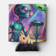 Die Alien der Disc Golfing ai art. Farbenfroh, extraterrestrisch, grau und wirft eine Scheibe auf den Planeten Erde.