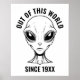 Ein schlichtes und minimalistisches Plakat, das perfekt für diejenigen ist, die gewollt haben, eine personalisierte Touch in ihren Raum zu bringen. Das Design zeichnet sich durch eine Alien mit großen, ausdrucksstarken Augen aus, die mit einem ruhigen, selbstbewussten Mund Geheimnisse und Tiefe vermitteln. Die klaren Linien behielt die ästhetische modern und minimalistisch. Passen Sie das Geburtsjahr als personalisierte Hommage an diejenigen, die wissen, dass sie alles andere als normal sind. Ideal für Wohngestaltung oder als einmaliges, personalisiertes Geschenk.