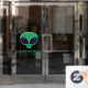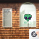 Cartoon Alien Kopfbild mit großen dunklen Augen mit "Glaube" Schrift. Tags: Alien, Raum, Mars, Cartoon, Spaß, Science Fiction, Vektor, sci fi, glaube