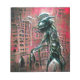 Eine gigantische, metallische Alien, die in eine Großstadt eindringt. Wombo Dream AI und Künstlerkooperation.