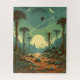 Alien Dschungel mit einer geheimnisvollen Silhouette in einem Retro-Sci-Fi-Cover Art Stil.