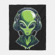 Ein minimalistisches Alien mit großen Augen und Kopfhörern – das perfekte Motiv für alle, die Techno, Raves und elektronische Musik lieben.