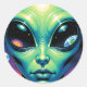 Alien mit Planeten-Reflektionen in den Augen Runder Aufkleber
