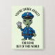 Dieser Knopf zeigt einen Alien-Polizisten in Uniform, der ein Abzeichen mit der Phrase "Du bist unter Arrest For Be Out Of This World" hält. Ideal für Fans von Science-Fiction und für alle, die ein weltweites Gefühl von Spaß haben.