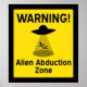 Warnung - Alien Abduktionszone - Warnzeichen in Gelb und Schwarz mit Raumschiff.