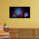 Ein sehr farbiges, wirbelndes, Fraktal-Bild erscheint zweimal. Einmal auf einem sternigen Weltraumhintergrund überlagert; ein zweites Mal auf einer kleinen Kugel. Vielleicht eine Sonde, die von einem Mutterschiff gestartet wurde, oder ein kosmisches Ei. Fügen Sie Ihren eigenen Text hinzu.