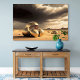 A mysterious sci-fi desert scene featuring monumental golden alien relics half-buried in endless sand dunes. Under a dramatic stormy sky, smooth metallic forms with intricate details suggest remnants of a forgotten civilization. A cinematic surreal artwork that blends science fiction, symbolism, and futuristic atmosphere—perfect for modern interiors and bold statement wall art.