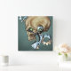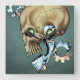 Alien Robot Skull aus der Zukunft in Chrome + Bone Quadratische Wanduhr