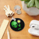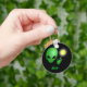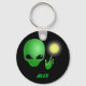 Ein lustiger Schlüsselanhänger für jeden Liebhaber der Science Fiction. Es zeigt einen Kopf und glühende Hand einer grünen Alien. Es ist unten ein Leerzeichen für einen Namen oder eine Nachricht vorhanden.