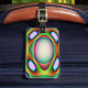 Dieses phantastische Gepäckanhänger zeichnet sich durch ein buntes Muster aus, in dem sich die psychedelischen Farben um eine zentrale Eizellstruktur drehen. Es ähnelt einer Fantasie eines Raumschiffs der Alien, das bereit ist, ein Erdbeben abzuwehren.Auf der Rückseite des Gepäckanhängers befindet sich ein anpassbarer Text, der es Ihnen ermöglicht, ihn mit Ihrem Namen und jedem beliebigen anderen Text Ihrer Wahl zu personalisieren.