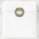 Dieses runde Aufkleber-Blatt weist ein buntes Muster von hellen psychedelischen Farben auf, das eine zentrale Eizellstruktur umgibt. Es ähnelt einer Fantasie eines Raumschiffs der Alien, das bereit ist, ein Erdling abzuwehren.