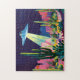 Ein spielerisches und geheimnisvolles Design mit einer Alien UFO, die über eine Wüstenlandschaft schwebt.