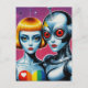 Alien und Roboter in der Liebe Regenbogen Postkarte