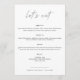 Ce menu présente un design minimaliste moderne et une police manuscrite élégante. Utilisez ce modèle pour modifier les polices, la couleur de police et la couleur de l'arrière - plan afin de répondre aux besoins de votre événement. Ce menu s'ajoute parfaitement à votre baby shower simple, minimaliste, élégant ou moderne, douche nuptiale, mariage, retraite ou tout autre événement ! Ce menu de table est composé d'une simple combinaison de couleurs blanches et noires, mais toutes les couleurs sont 100% modifiables pour correspondre à votre style.