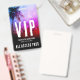 Dieses VIP-Abzeichen zeichnet sich durch ein farbenfrohes und dynamisches Design aus, das sich ideal für ein Outdoor-Konzert oder ein Party mit Coachella-Ambiente eignet. Oben zeigt eine lebendige Mischung aus blauen, rosa, roten und lila Kunstwerken Silhouetten von Konzertbesuchern und eine Palme in den oberen links, um das lebendige Festivalgefühl zu erfassen. Das Bild wird unten glatt in Schwarz angezeigt, wobei der Ereignisname, das Datum und der "Gesamte Zugriffspass" in weißen Schriftart mit "VIP"-Fettdruck am oberen Rand angezeigt werden. Das gleiche Design erscheint auf beiden Seiten für einen polierten und zusammenhängenden Look. Alle Schriftart- und Textfarben sind vollständig anpassbar, und Sie können das Bild oder die Farbpalette an Ihr Veranstaltungsthema anpassen.