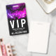 Dieses VIP-Abzeichen zeichnet sich durch ein gewagtes rosa, lila und schwarzes Design aus und eignet sich ideal für ein Outdoor-Konzert oder ein Party mit Coachella-Ambiente. Entlang der Decke erstrecken sich Silhouetten von Palmen über einen blühenden rosa und lila Himmel, die eine lustige und dynamische Festivalstimmung ausstrahlen. Das Bild wird unten schwarz angezeigt, wobei der Ereignisname, das Datum und der "Zutrittsübergang" in einem sauberen, fett gedruckten Schriftart mit weißen Sans serif (Serifenfolge) angezeigt werden. "VIP" wird oben im selben schlichten Stil für ein schlankes, modernes Aussehen gezeigt. Das gleiche Design erscheint auf beiden Seiten für ein glänzendes und zusammenhängendes Gefühl. Alle Texte und Farben sind vollständig anpassbar, sodass Sie es perfekt zu Ihrem Event machen können.