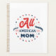 Spiralplaner mit All American Mama Typografy Abzeichen Style Grafik in patriotisch rot und blau